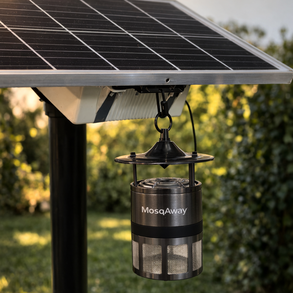 MosqAway attire, capture et piège les moustiques pour protéger durablement votre jardin et votre terrasse.